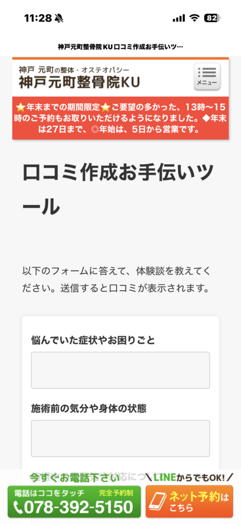 このガイドでは、整骨院KUの口コミ作成ツールを使ってGoogleマップに口コミを投稿する手順を、実際の画面とともにわかりやすく説明します。